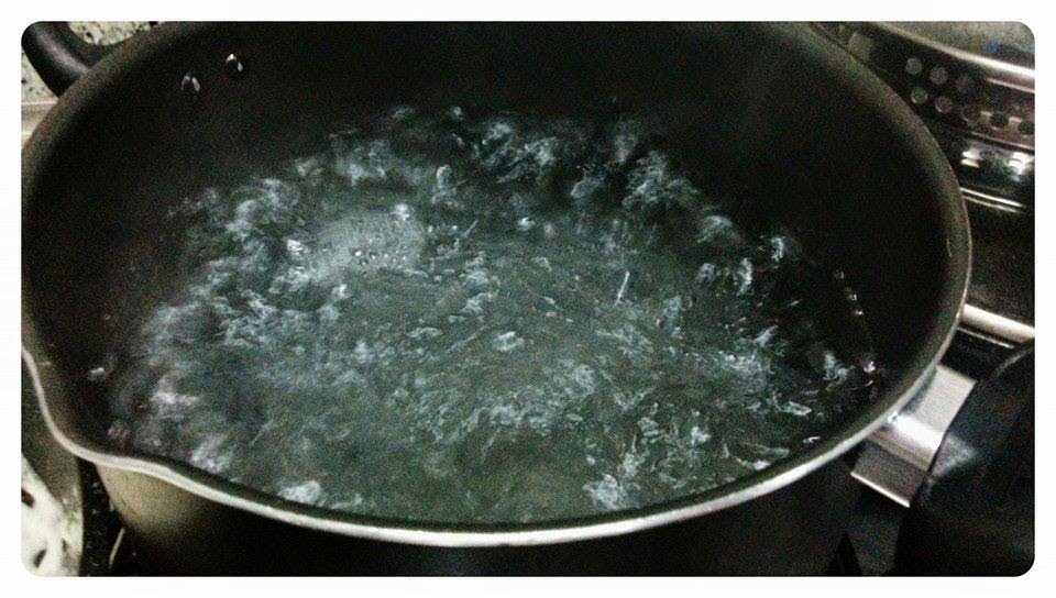 Aquecer a água em fogo alto, até que levante fervura.
