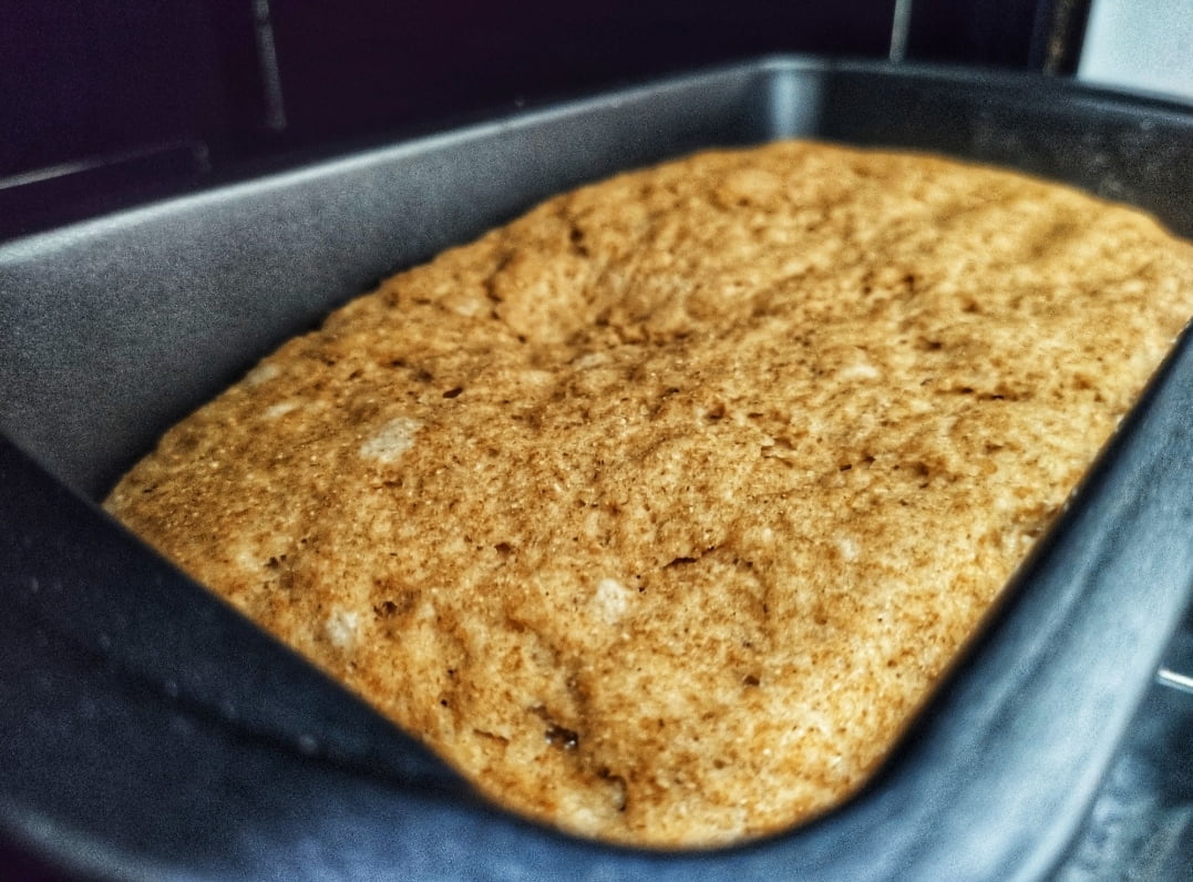 Espalhe a massa em uma forma untada e deixe crescer por 1h.