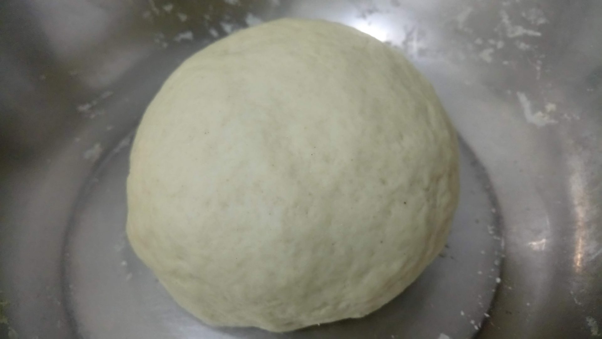 Misturar o fermento biológico com a água morna e o açúcar e colocar aos poucos sobre a farinha de trigo. Adicionar a manteiga e o sal. Sovar bem por 5min e deixar descansar 10min.
