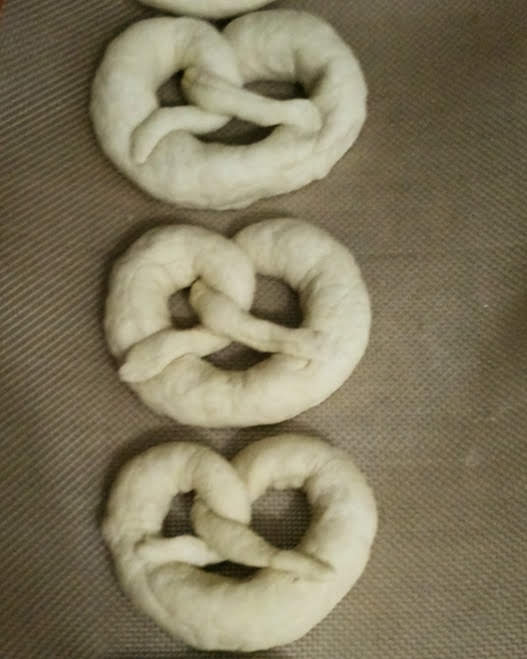 Entrelaçar uma vez, colocando as pontas sobre o pretzel. Deixar descansar mais 10min.