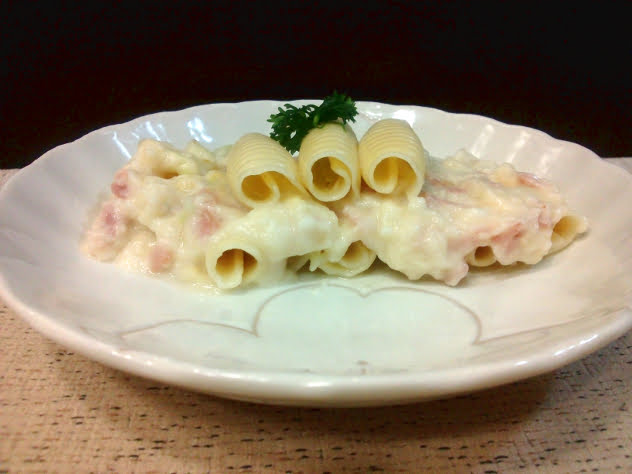 Fizemos esta receita à moda Parisiense, com molho mornay especial (leite de cabra, farinha de arroz, amido de milho, manteiga, queijo gruyère) e presunto. Adicionamos couve-flor e temperamos com alho-porró, noz-moscada e pimenta-do-reino.