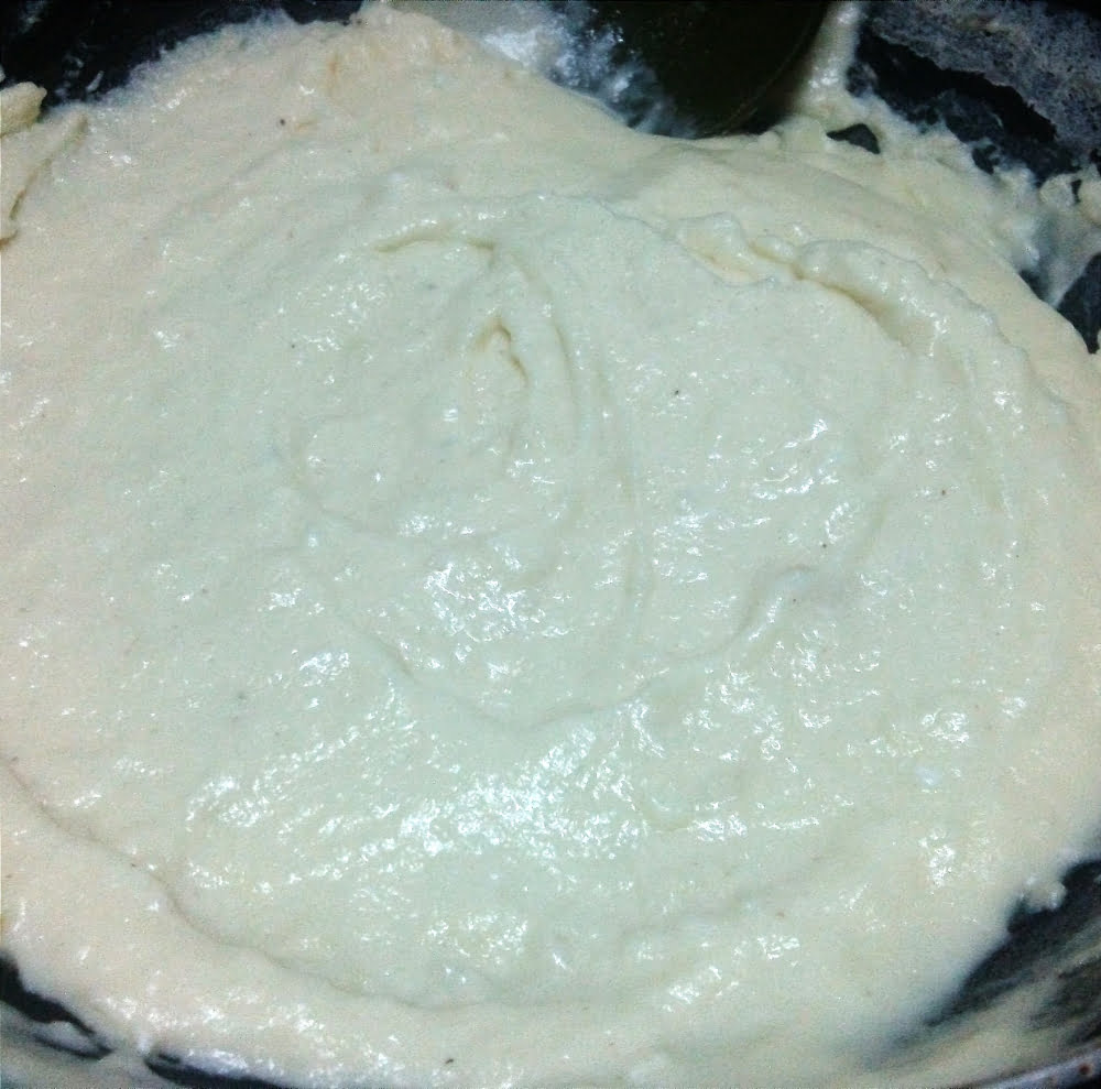 - Em uma frigideira, aquecer a manteiga até derreter (em fogo médio) e despejar os copos de farinha dissolvida no leite, misturando por 5 minutos. Acrescentar os ovos, o sal e a noz-moscada. Misturar até que se torne um creme homogêneo e espesso (por 10 minutos). Reservar.