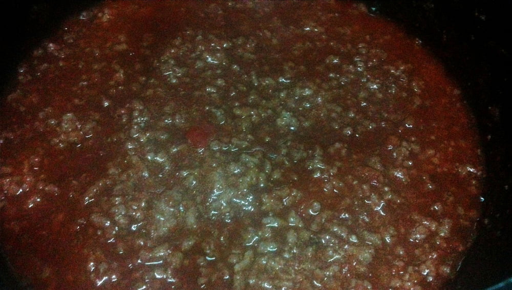 - Em uma panela média, colocar o azeite e refogar a cebola por 5 minutos, em fogo médio (até que fique um pouco transparente). Acrescentar a carne e refogar por mais 10 minutos. Adicionar o purê e o extrato de tomate e cozinhar por 10 minutos (até começar a ferver).