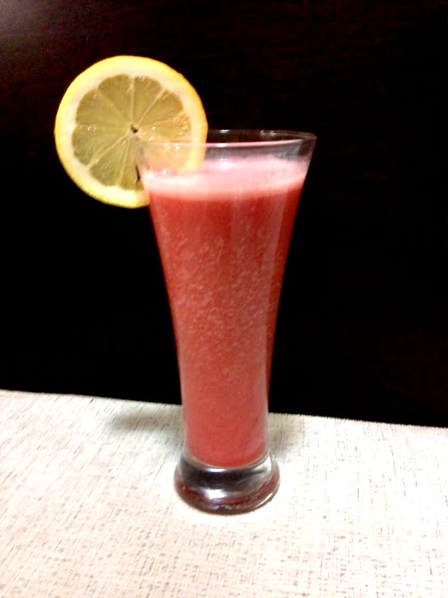 - Em um copo, colocar 1 colher (sopa) da essência de baunilha, o smoothie de morango e espremer 1 fatia de limão-siciliano por cima. Misturar e servir em seguida!