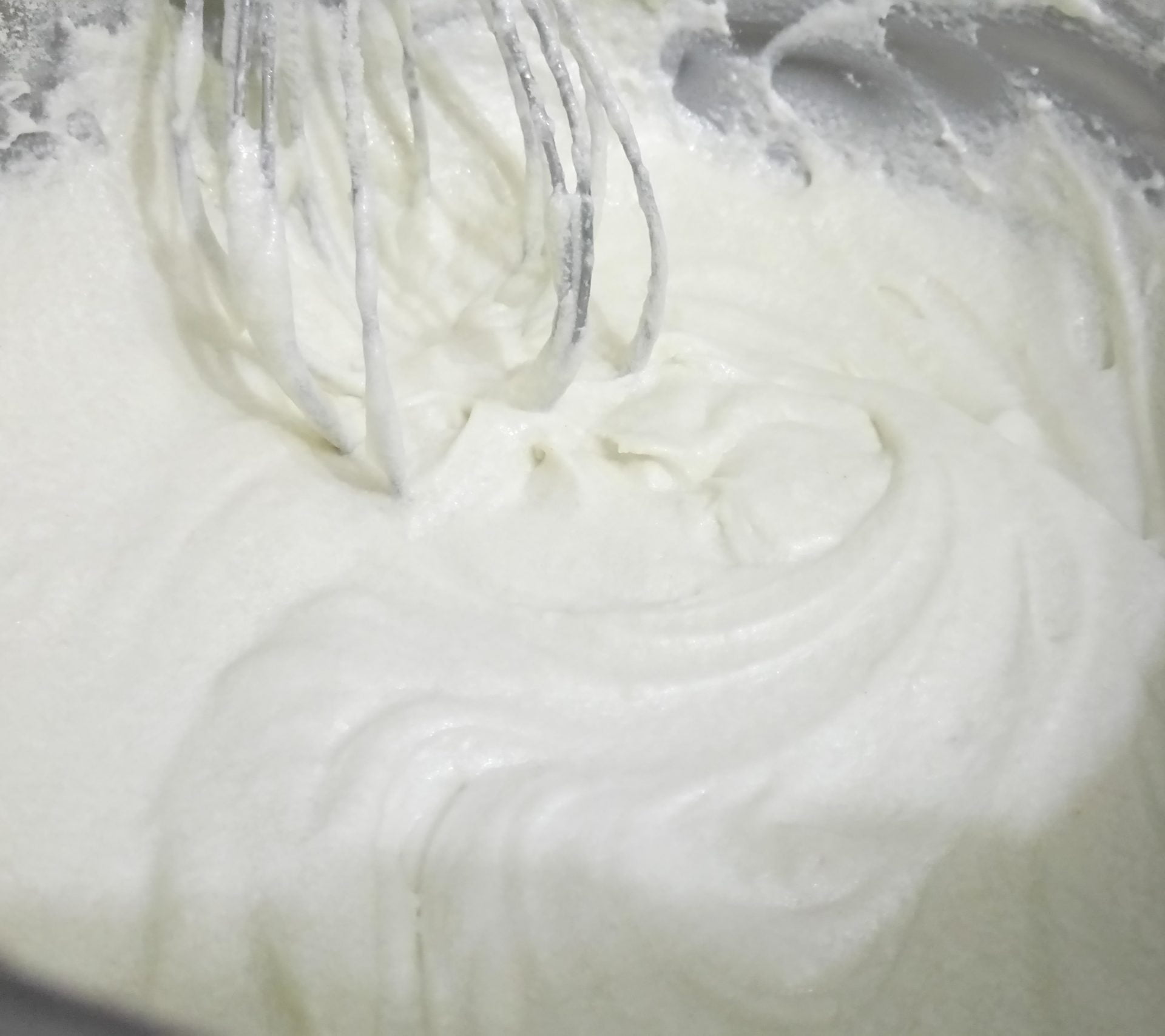 - Em uma batedeira ou mixer, bater a manteiga e o açúcar até que se torne uma pasta leve e macia. Adicionar a mistura de farinha e leite aos poucos à batedeira. Deixar batendo até que se torne um creme parecido com a consistência de um chantilly.